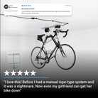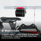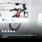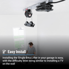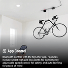 App enabled ceiling storage that does all the heavy lifting for you. With smart sensors, speed, height and locking system controls, your bikes are safely protected and effortlessly stored away.