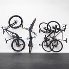 Experience the convenience of effortless, ultra compact bike storage. The patent-pending handlebar tilt swivels the entire bike flat so you can get as close to the wall as possible for space optimization and enables contactless side-by-side mounting. Designed for easy roll-in storage and customized specifically for Road, Gravel, MTB and/or E-Bike models.